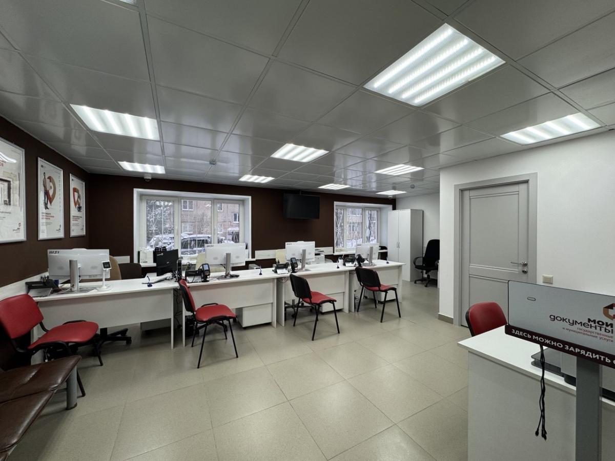 В современном помещении созданы все условия для комфортного обслуживания посетителей. Для приёма документов оборудовано четыре окна, а также работает два специальных окна для работы с Региональным порталом государственных и муниципальных услуг.